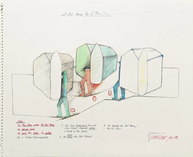 A Fat House for a Thin Man 9, 1974, mixed media, 38x46.5cm.