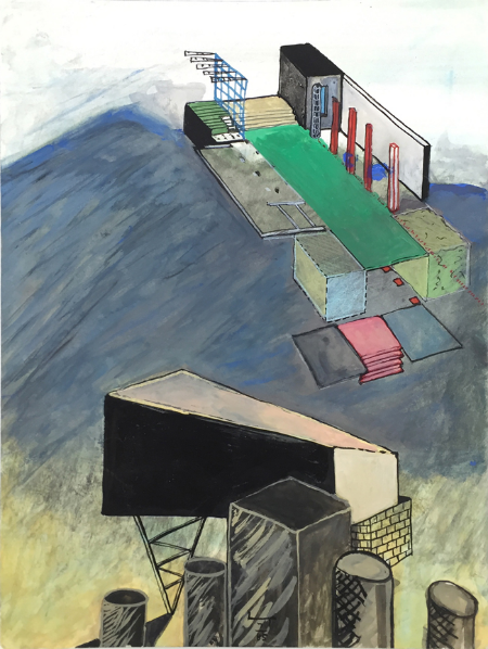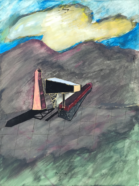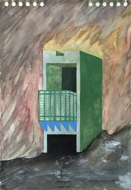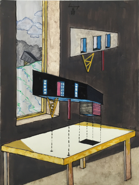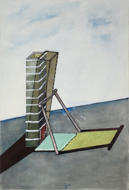 Leaning Fireplace, 1989, gouache, 57 x 38 cm