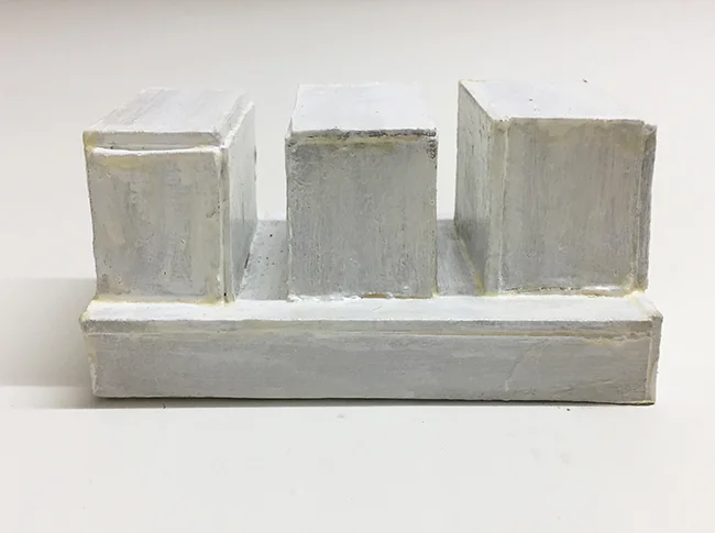 Study model for Novartis building, paint and cardboard, 47 x 103 x 47 mm