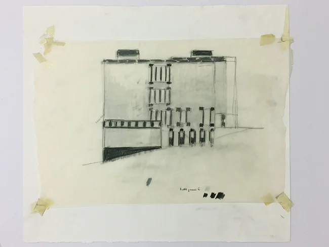 Drawing for the new organ of Basel cathedral, 2003, pastel on tracing paper, 86 x 69 cm