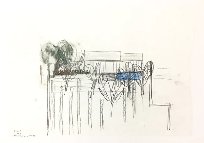 Atelierhaus 2013, facade, pastel on tracing paper, 30 x 41 cm